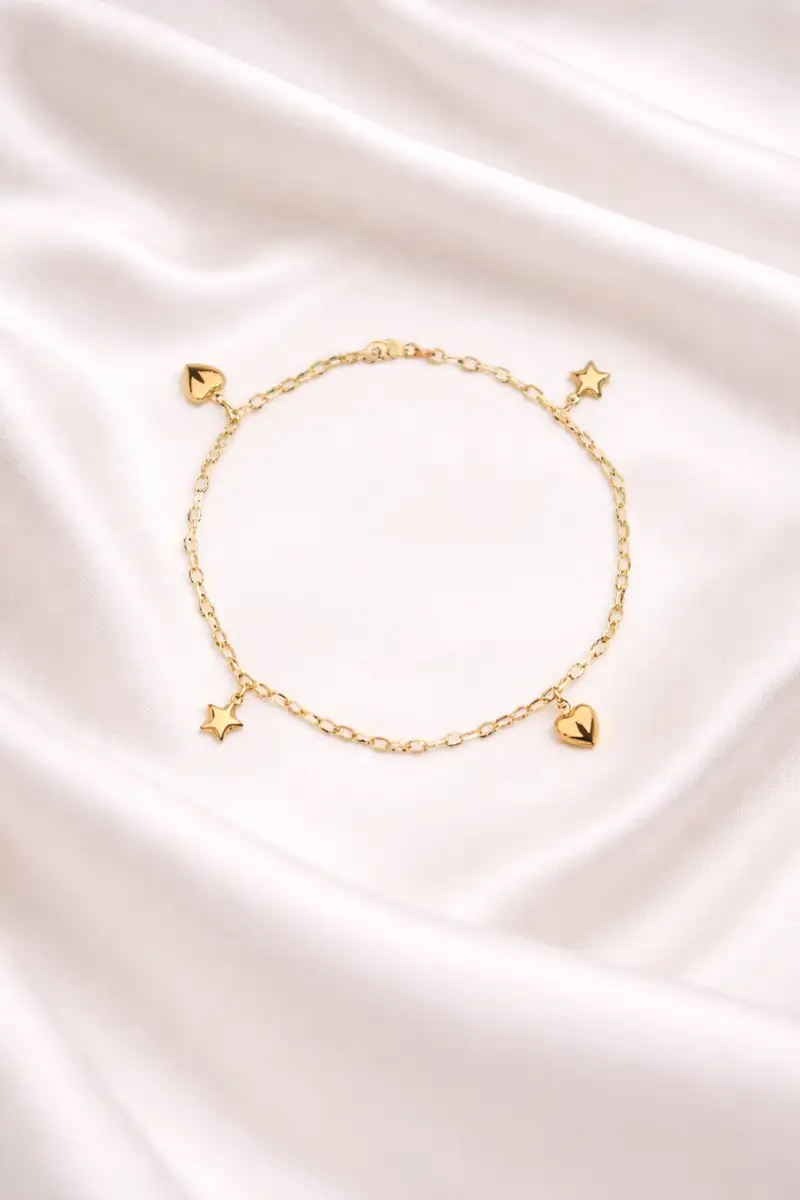 Garanta agora sua Pulseira de Ouro 18K Corações e Estrelas