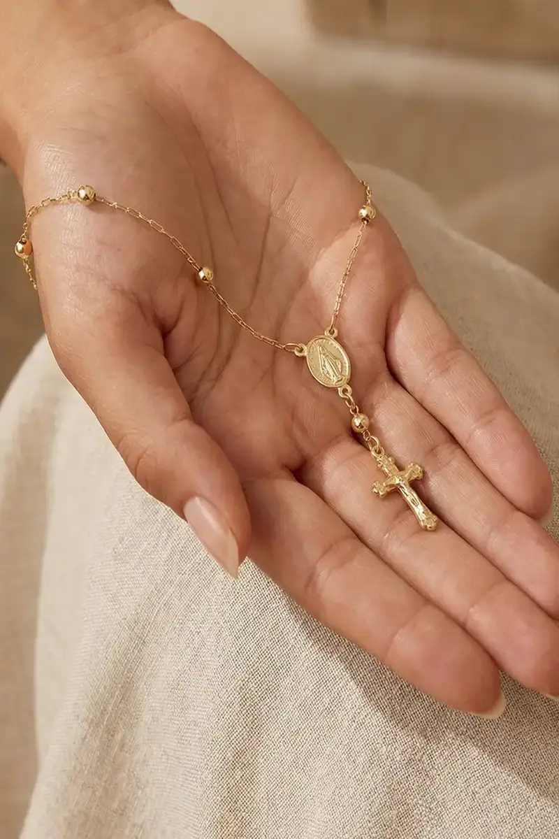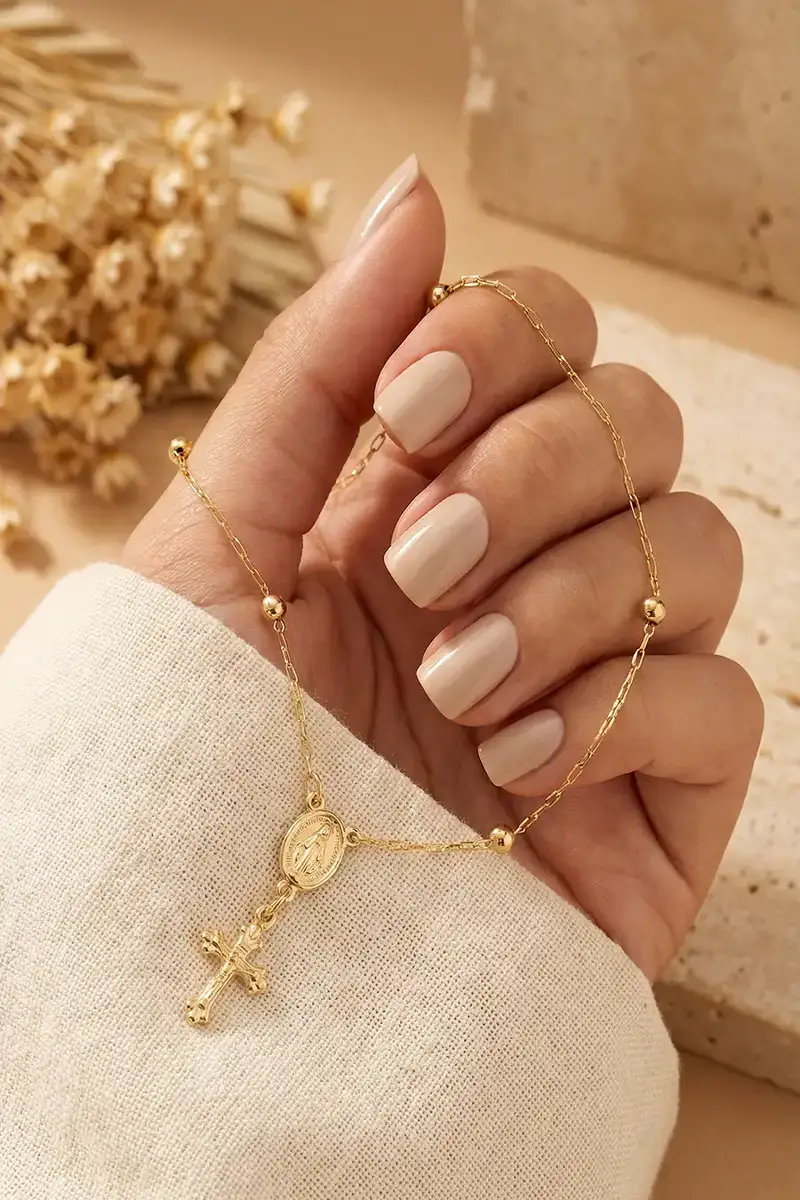 Delicada, simbólica e sofisticada, a Pulseira de Ouro 18K Terço de Mão une espiritualidade e beleza em uma joia atemporal. Inspirada no terço tradicional, ela representa proteção, devoção e boas energias, enquanto o brilho do ouro amarelo 18K traz sofisticação e leveza para acompanhar você em todos os momentos.